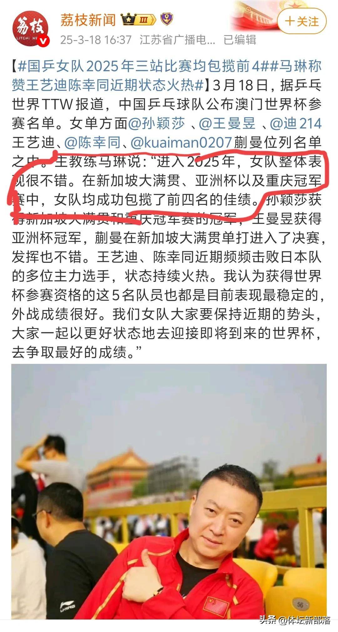 但更多声息质疑这种论调穷乏依据。资深球迷指出:寰球杯秉承邀请制,樊振东算作世锦赛冠军自动得到阅历,退赛是个东说念主权益而非被动让开。女队主教练马琳也侧面酬谢:"女队合座阐明很可以。在新加坡大满贯、亚洲杯以及重庆冠军赛中,女队均得胜包揽了前四名的佳绩。"