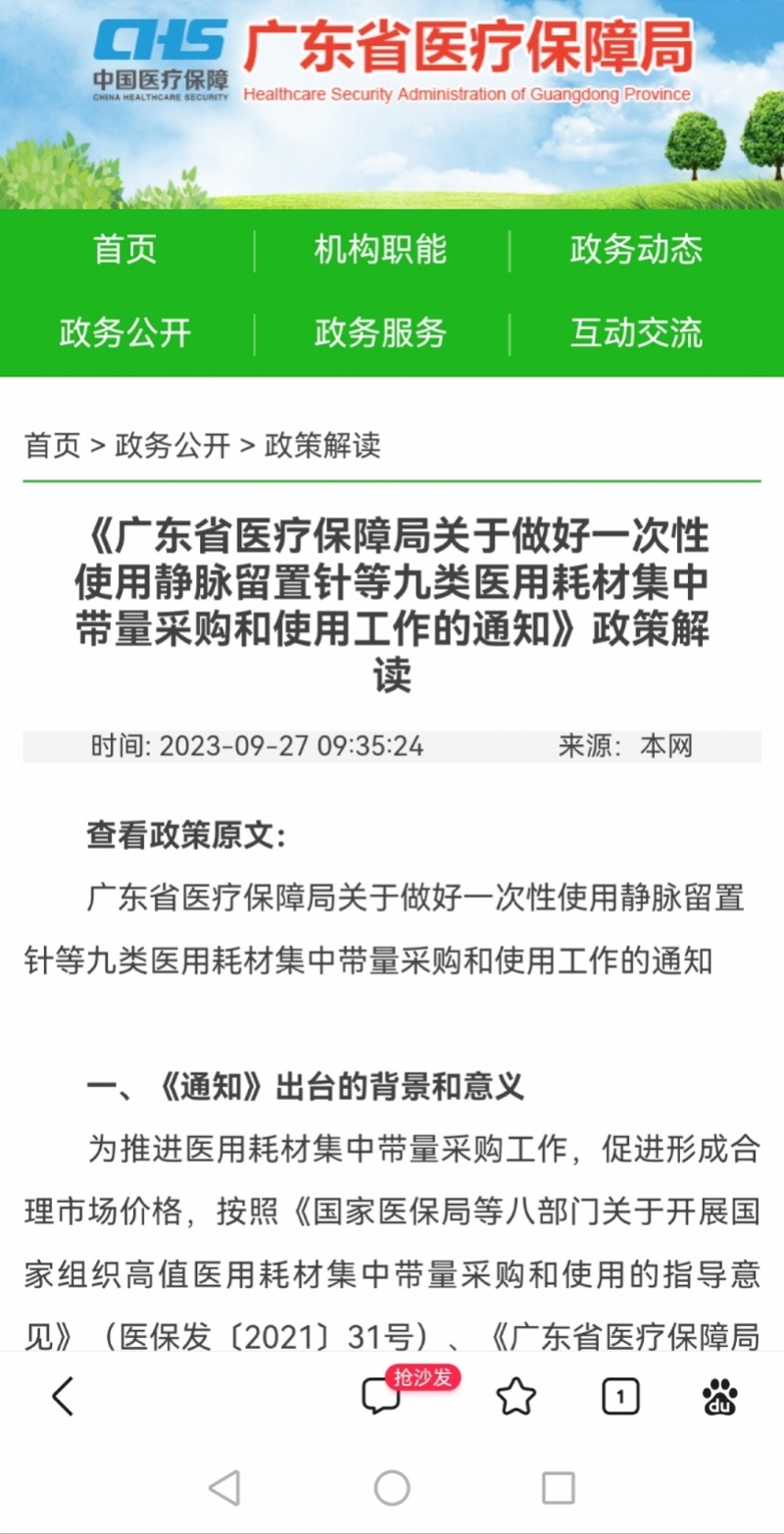 近日,广东省医保局官网对外发布《广东省医疗保险局对于作念好一次性使用静脉留置针等九类医用耗材汇聚带量采购和使用责任的见告》。广东省辘集江西、青海、贵州和内蒙古4省构成采购定约平顶山焱火体育,开展一次性使用静脉留置针等九类医用耗材定约地区汇聚带量采购。